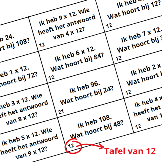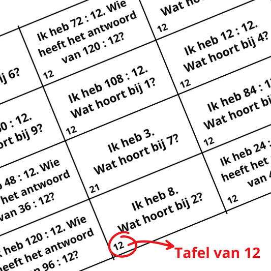 Actie reactie spel - Tafeltjes 2 t/m 12