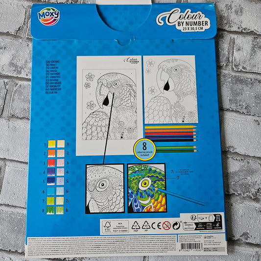 Kleuren op nummer - Met 8 potloden - Papegaai