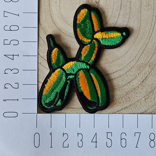 Strijk embleem - Iron on Patch - Ballonhondje groen oranje - Kruikenstad