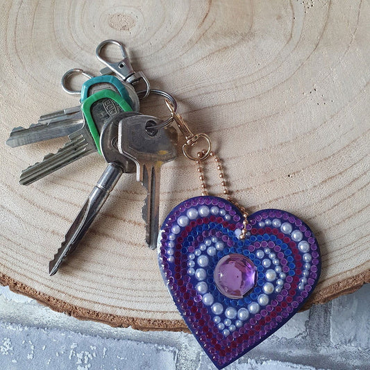 Diamond painting sleutelhanger hartje - Ronde steentjes