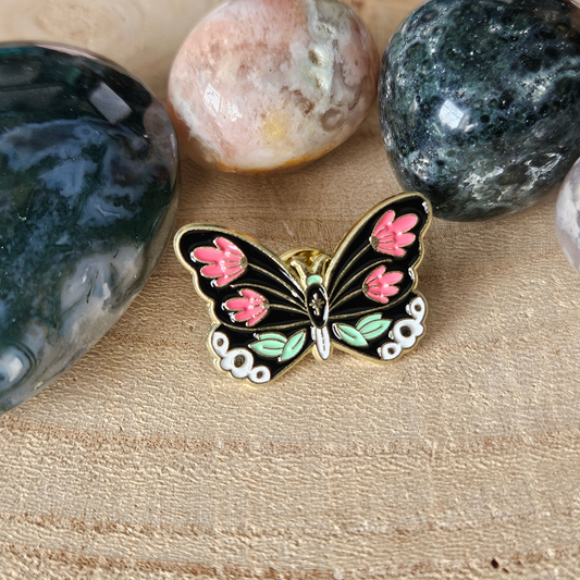 Enamel pin - Vlinder met roze bloemen