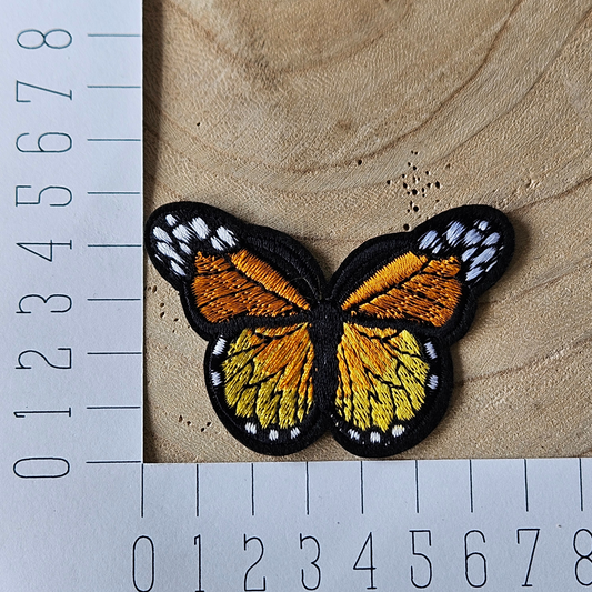 Strijk embleem - Iron on Patch - Oranje / Gele vlinder