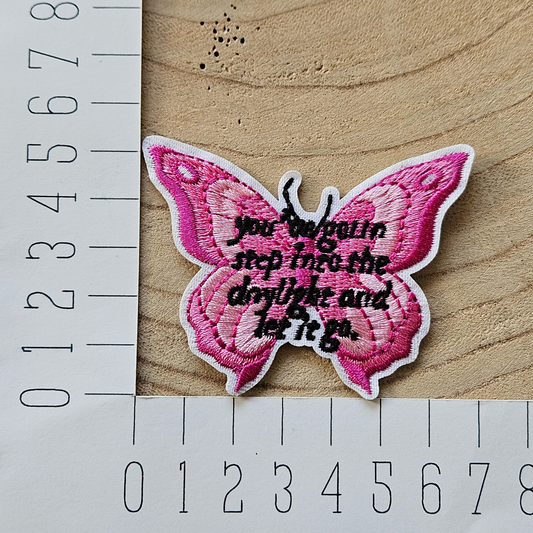 Strijk embleem - Iron on Patch - Roze vlinder step into the daylight