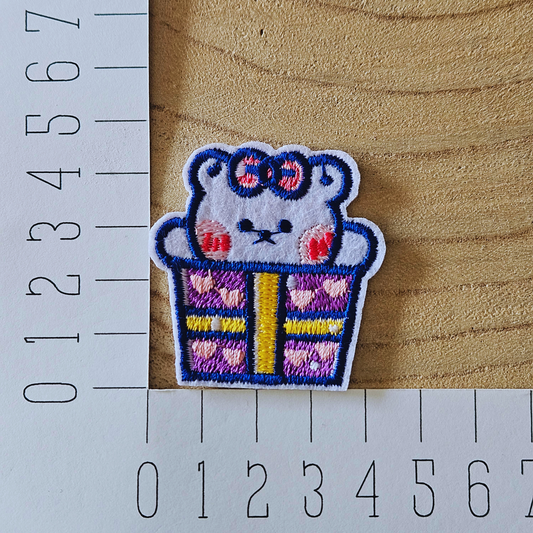 Strijk embleem - Iron on Patch - Beertje in cadeau box