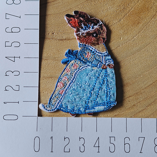 Strijk embleem - Iron on Patch - Konijn in blauwe jurk