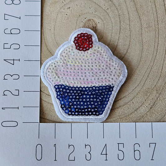 Strijk embleem - Iron on Patch - Pailletten cupcake