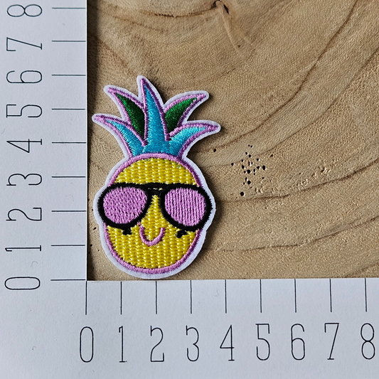 Strijk embleem - Iron on Patch - Ananas met zonnebril