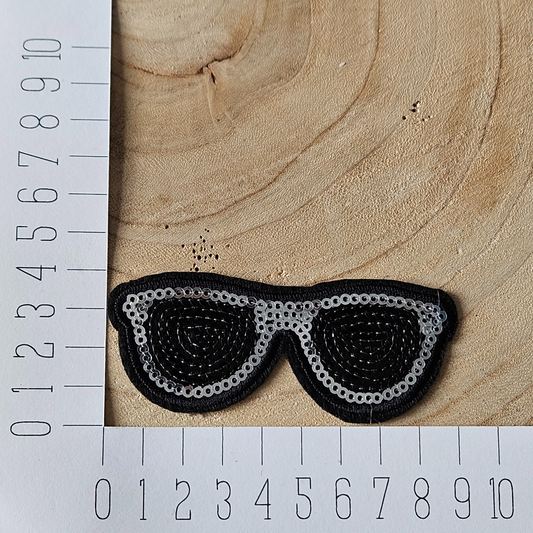 Strijk embleem - Iron on Patch - Pailletten zonnebril zilver