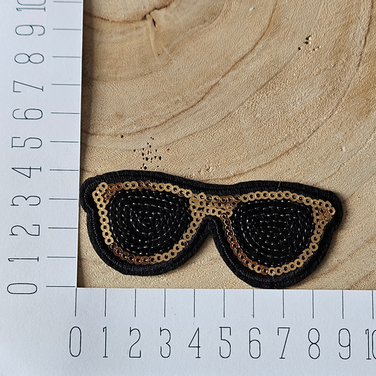 Strijk embleem - Iron on Patch - Pailletten zonnebril goud