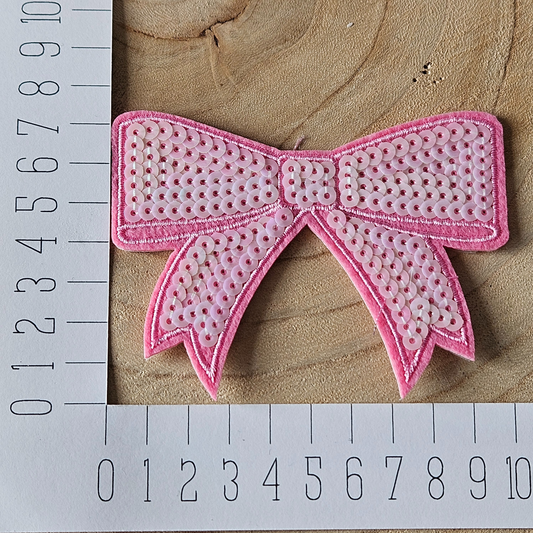 Strijk embleem - Iron on Patch - Roze pailletten strik