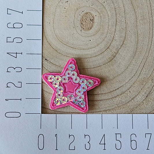 Strijk embleem - Iron on Patch - Roze pailletten ster