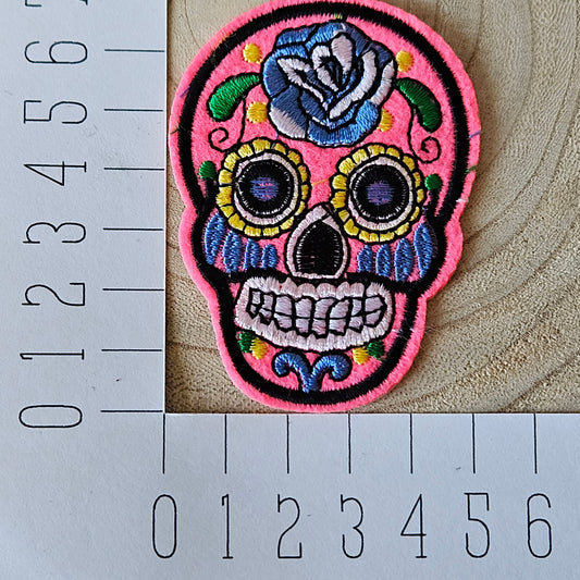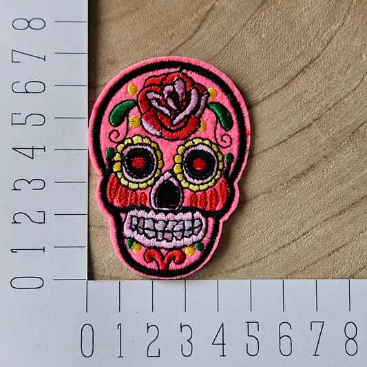 Strijk embleem - Iron on Patch - Roze doodshoofd