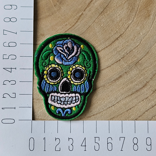 Strijk embleem - Iron on Patch - Doodshoofd groen