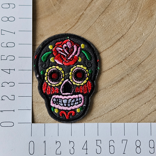 Strijk embleem - Iron on Patch - Versierd schedel