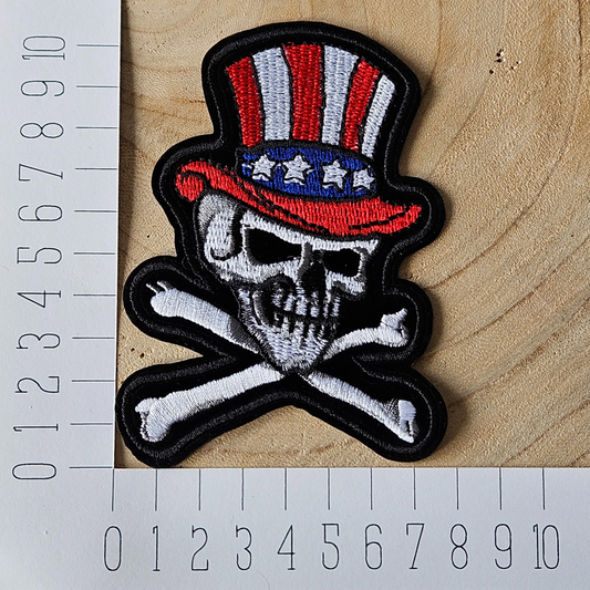 Strijk embleem - Iron on Patch - Schedel met hoed