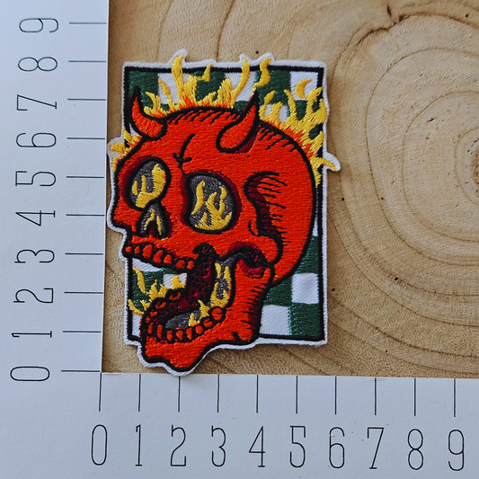 Strijk embleem - Iron on Patch - Duivel schedel