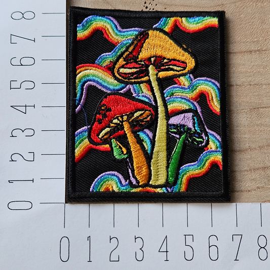 Strijk embleem - Iron on Patch - Paddenstoelen regenboog