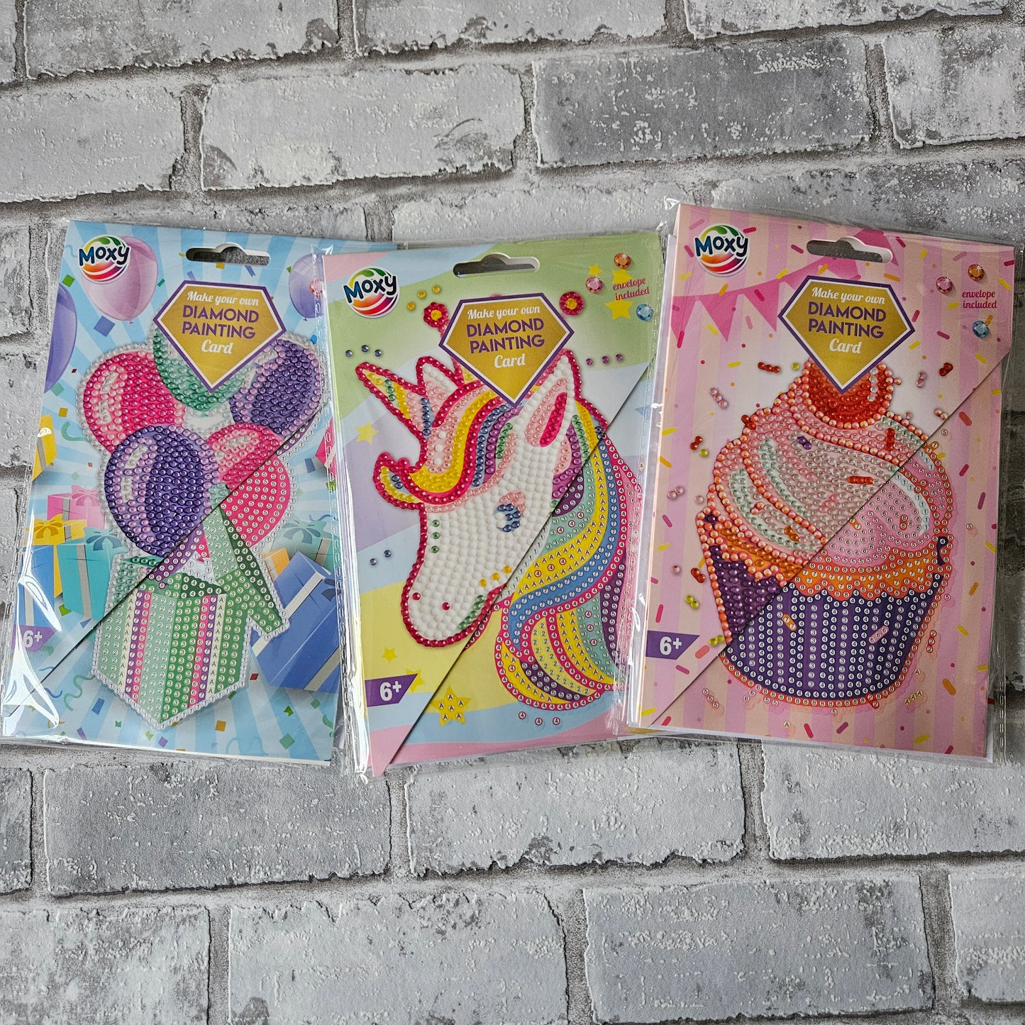 Diamond painting kaarten bundel - 3 stuks - Cupcake, Eenhoorn, Ballonnen