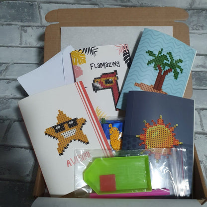 Verlies jezelf in een wereld van exotische avonturen met onze Diamond Painting Kaarten. Elk van de 4 kaarten in deze set brengt je in de vakantie stemming. Laat je inspireren door de leuke afbeeldingen terwijl je elke kaart tot leven brengt met glinsterende diamanten. Dompel jezelf onder in de ontspannende wereld van diamond painten.