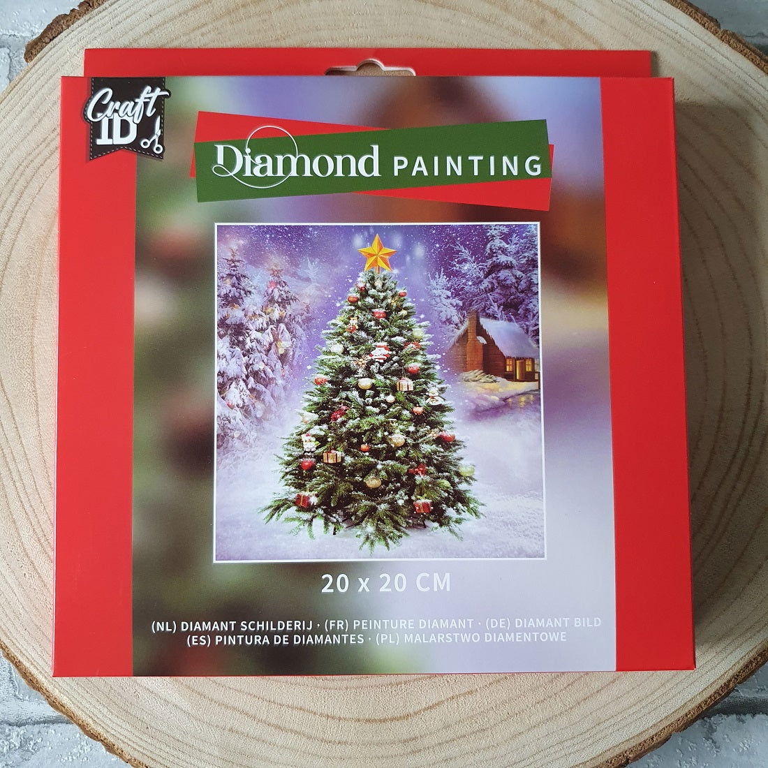 - Voorgedrukt canvas: Een helder en gedetailleerd ontwerp van 20x20 cm, met een kerstboom omgeven door sneeuw.