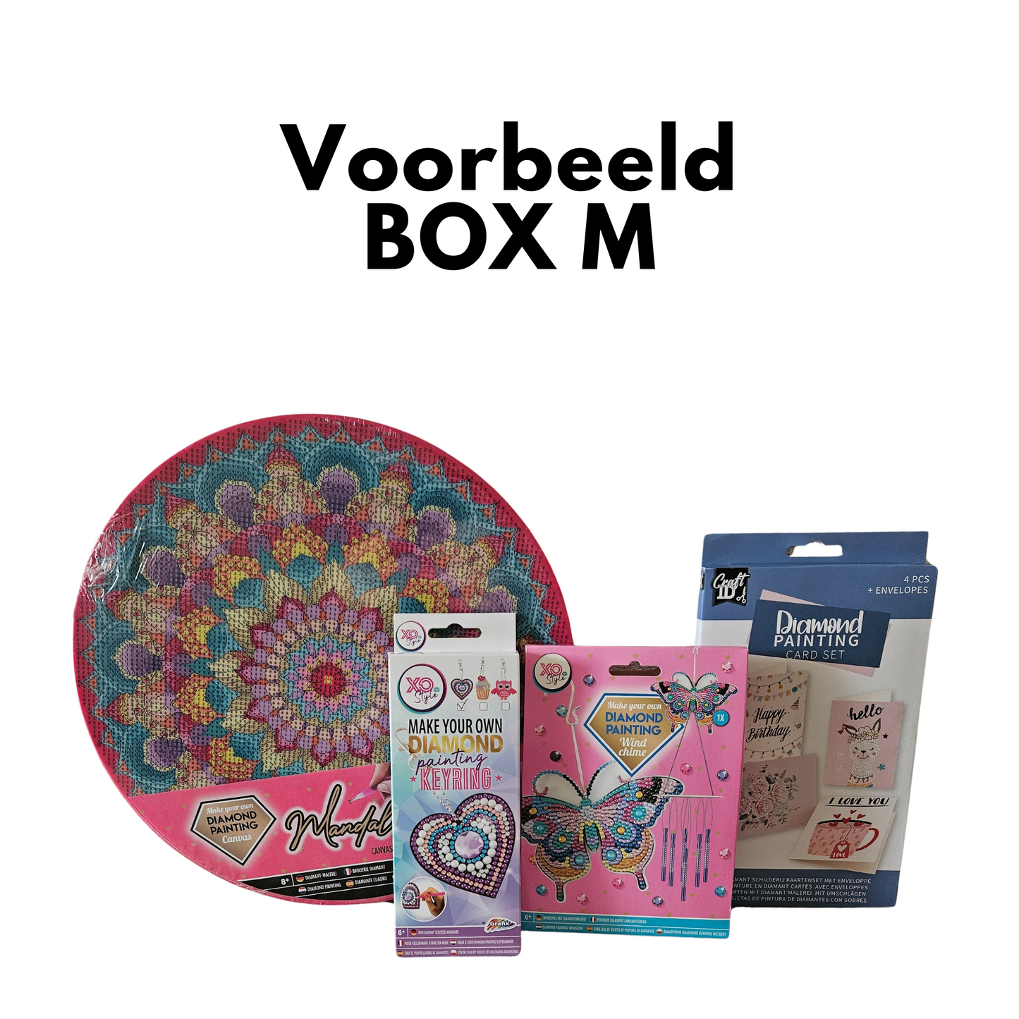 Een verrassing is altijd leuk, helemaal als je graag creatief bezig bent. Met onze Diamond painting Mystery box heb je keuze uit 4 verschillende boxen. De boxen bestaan standaard uit verschillende diamond paintings. De soort diamond painting staat hieronder beschreven per box. Het is alleen een verrassing welk figuurtje/ kleur je krijgt.