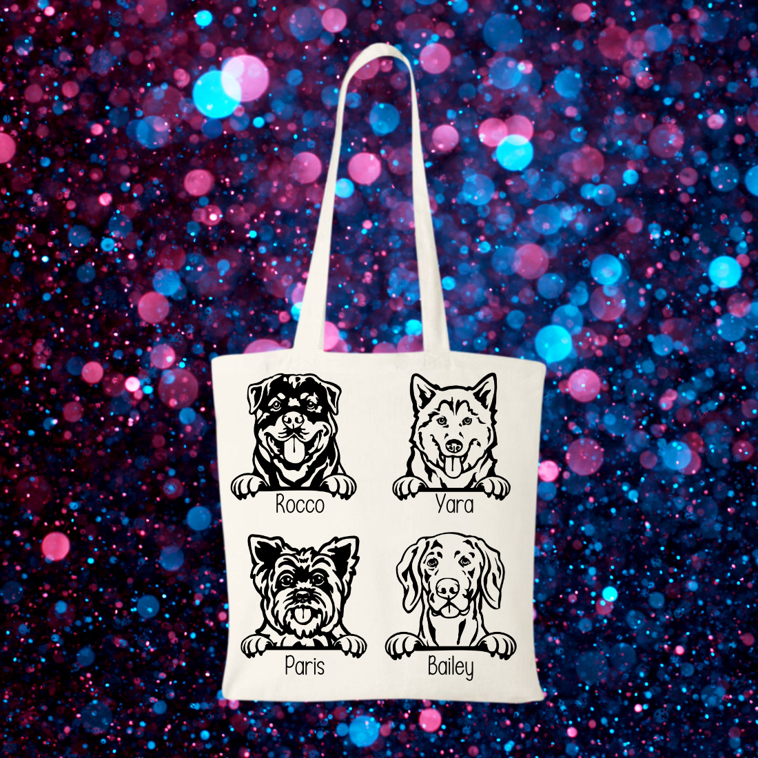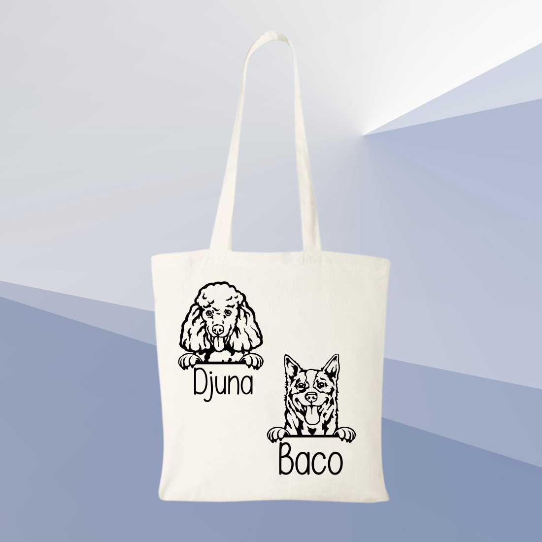 Maak kennis met de gepersonaliseerde tote bag met het ras en de naam van je harige vriend! Deze tote bag is gemaakt van hoogwaardig katoen en is niet alleen stijlvol, maar ook functioneel. Met de optie om te kiezen uit 1, 2, 3 of 4 hondenrassen, kun je hem echt helemaal eigen maken. Typ gewoon het nummer van het ras en hun naam in het daarvoor bestemde tekstvak. Voor meerdere honden op één tas, zorg ervoor dat je het nummer van het ras invoert, gevolgd door hun naam. Deze tote bag is perfect voor elke hondenliefhebber en is een geweldig cadeau voor jezelf of een geliefde.