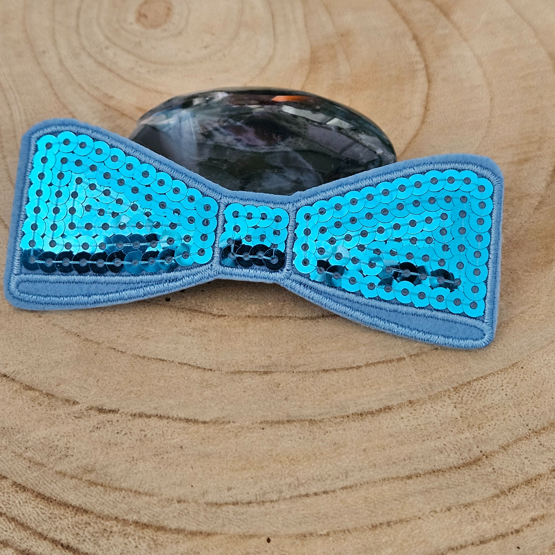Strijk embleem - Iron on Patch - Blauwe pailletten strik