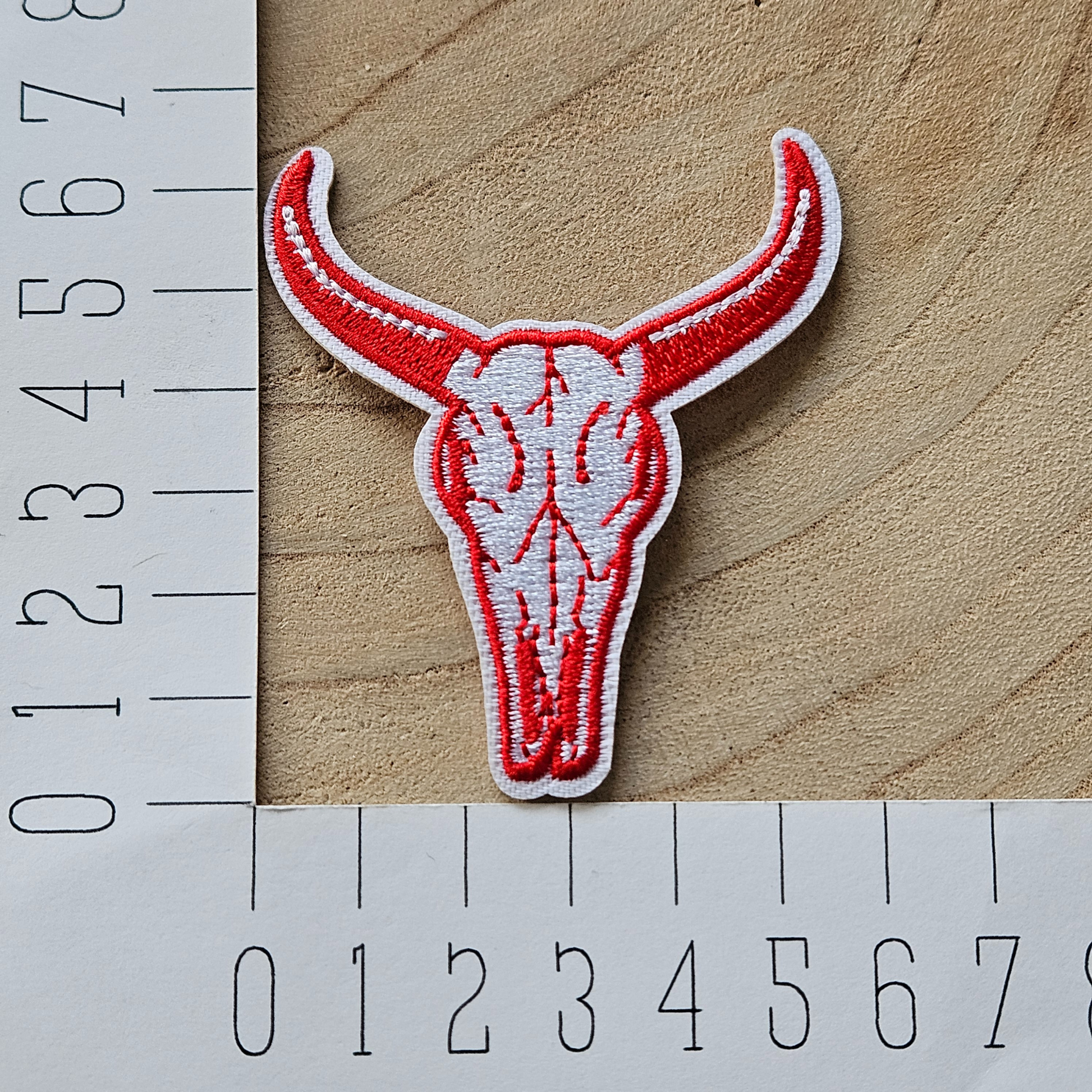 Strijk embleem - Iron on Patch - Rood runderschedel