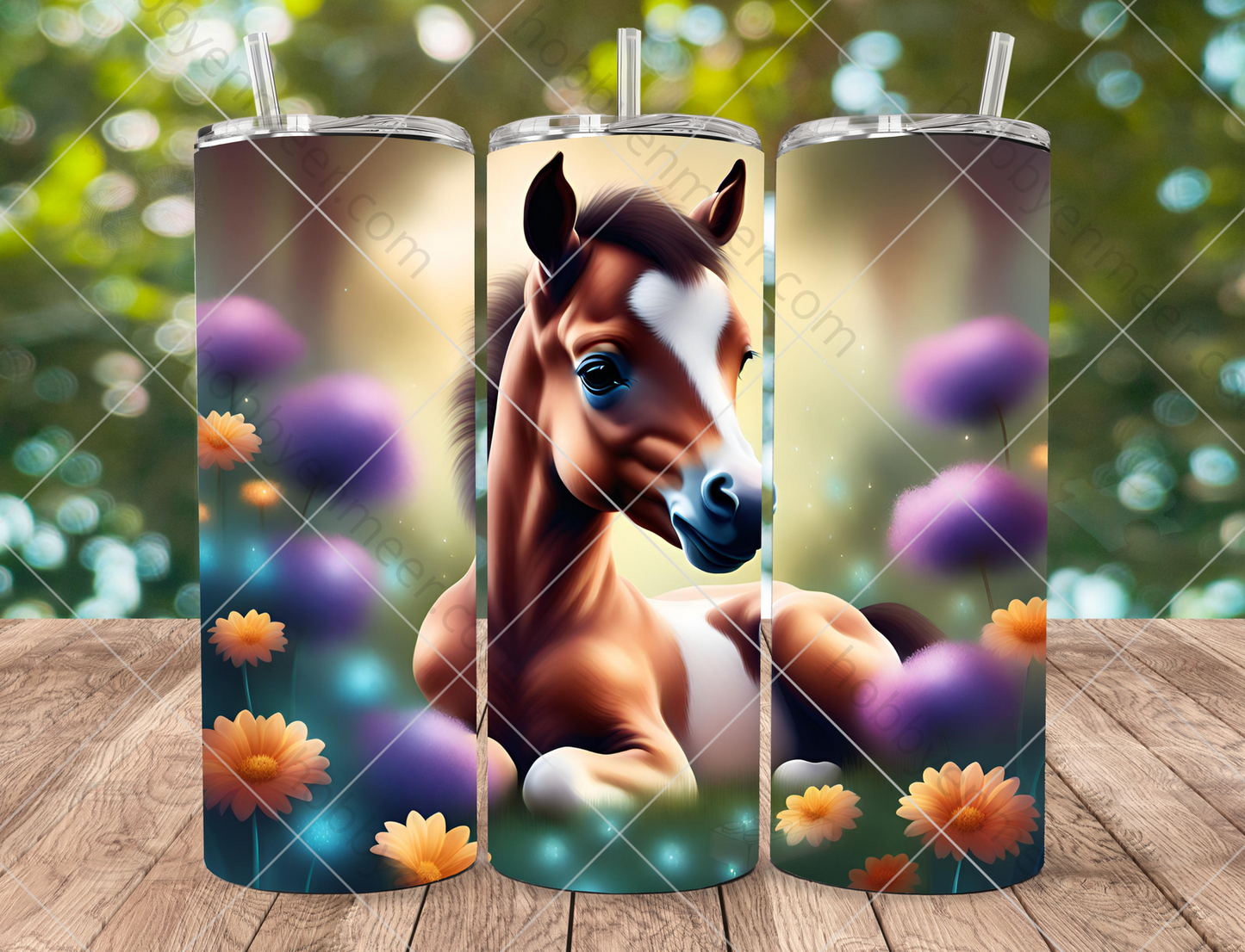 Sublimatie Tumbler wrap - Schattig veulen tussen de bloemen