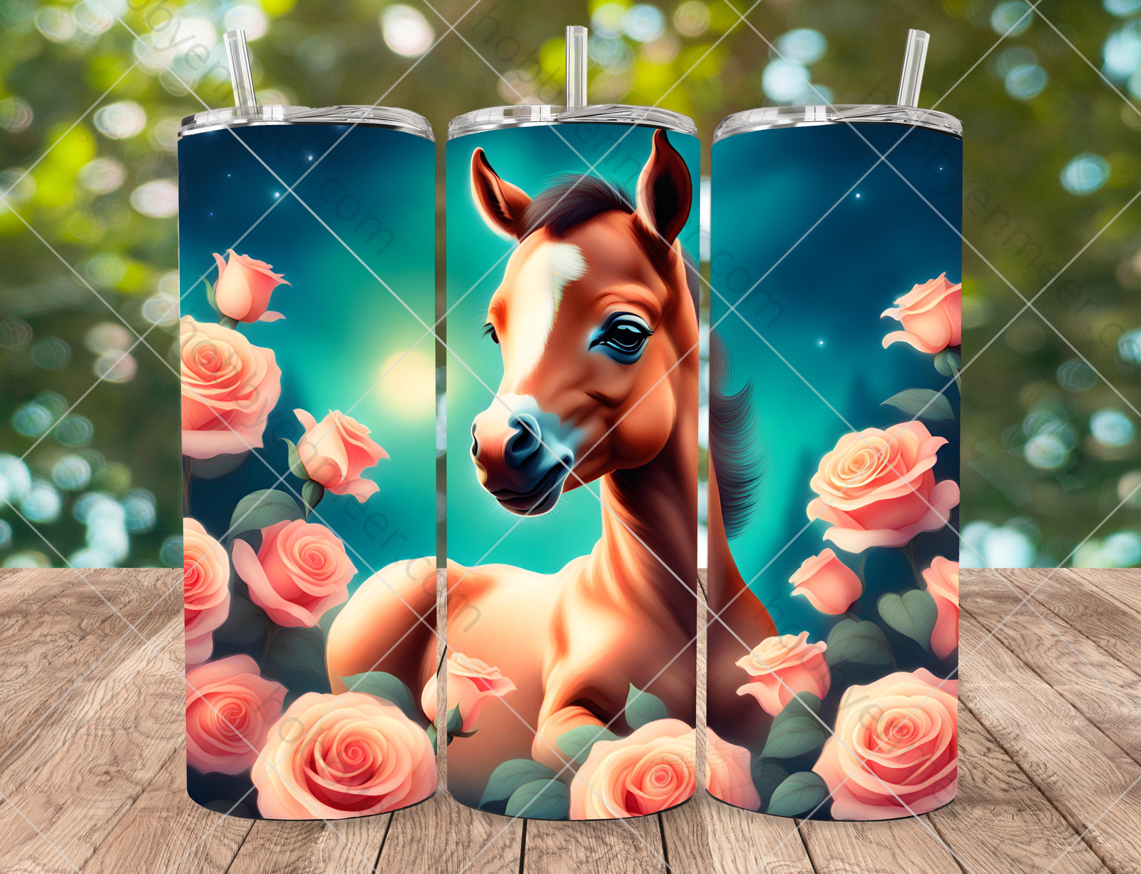 Sublimatie Tumbler wrap - Schattig veulen tussen de rozen