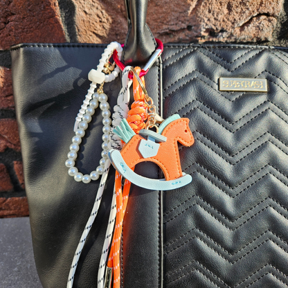 Voeg een vleugje nostalgie toe aan je accessoires met deze unieke schommelpaard hanger van leer. Deze charmante tas- of portemonneehanger brengt je terug naar je kindertijd en geeft tegelijkertijd een stijlvolle en speelse look aan je handtas, rugzak of sleutelbos.