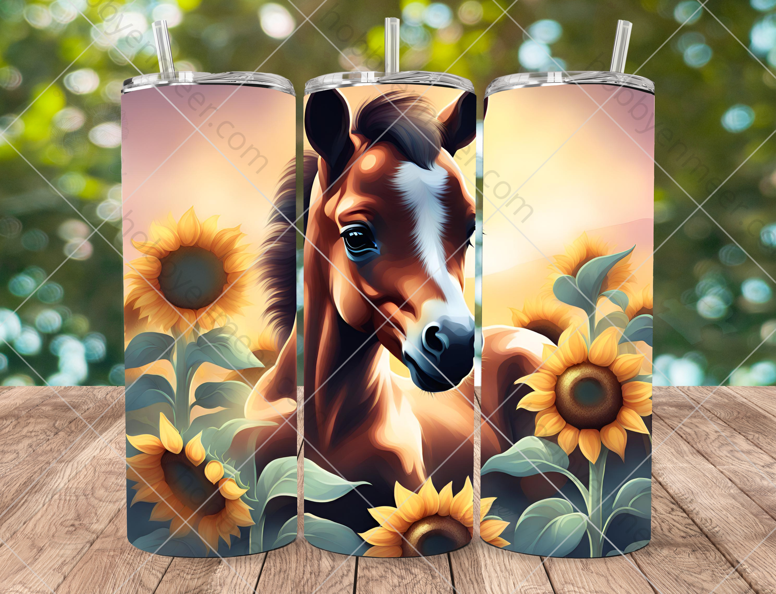 Sublimatie Tumbler wrap - Schattig veulen tussen de zonnebloemen