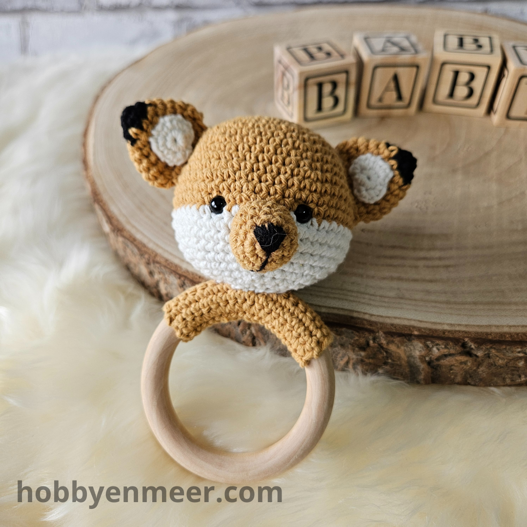 Op zoek naar een uniek en schattig kraamcadeautje? Dit met de hand gehaakte vosje op een houten ring is het perfecte geschenk voor elke pasgeborene en hun ouders!